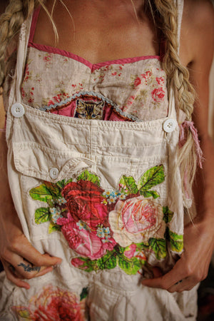 Европейски памучни брезови флорални гащеризони с апликации, кръпки, смесени копчета, поправки, избледняване и износване