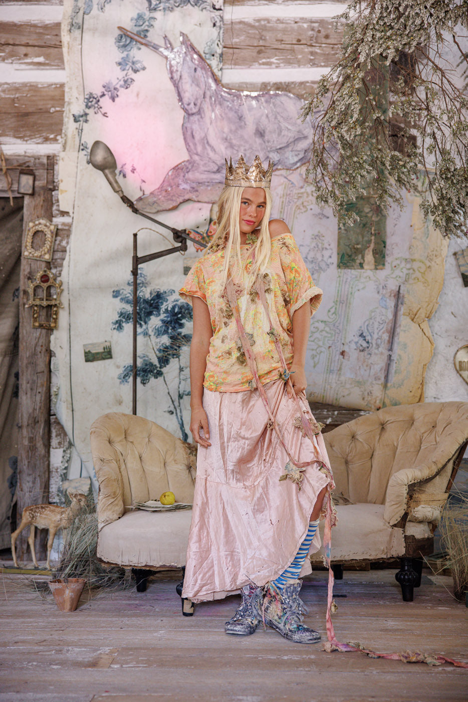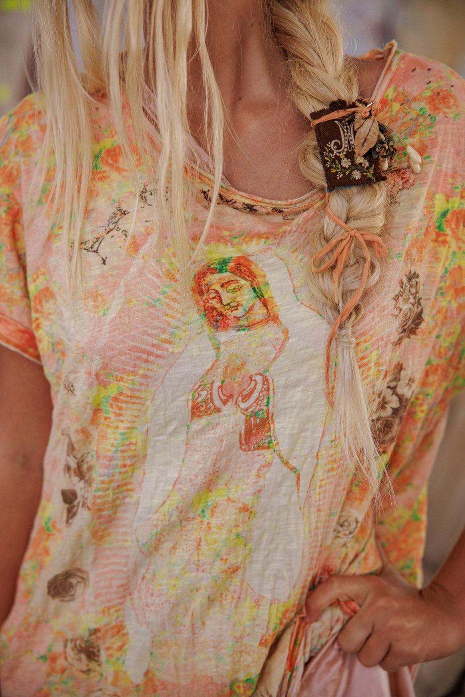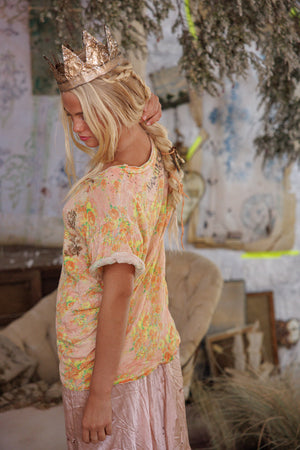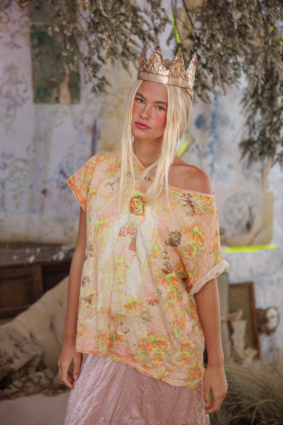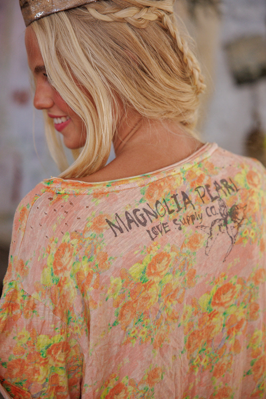 Памучна тениска Jersey All Over Roses Guadalupe T, свободен модел, с ръчно избледняване и износване