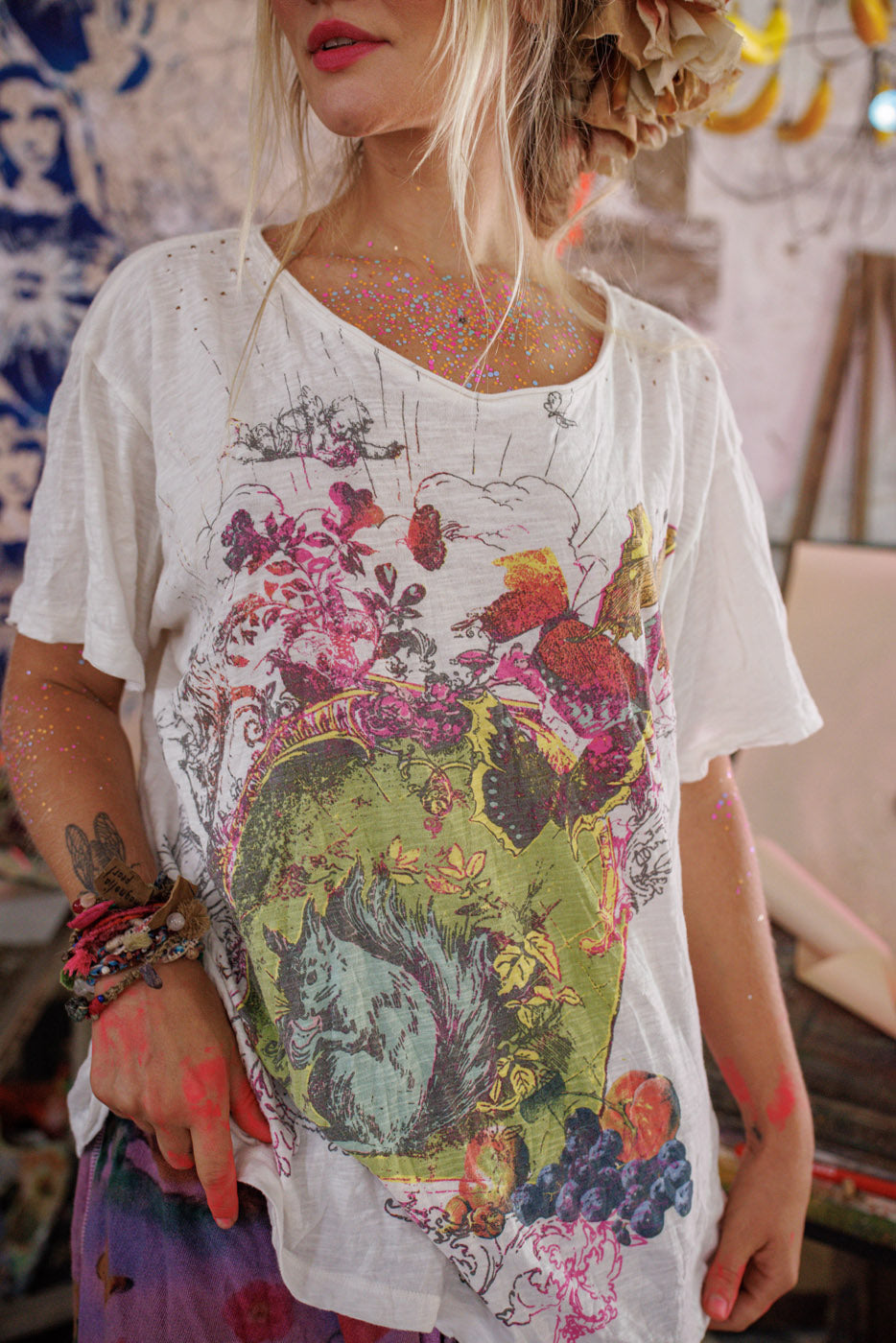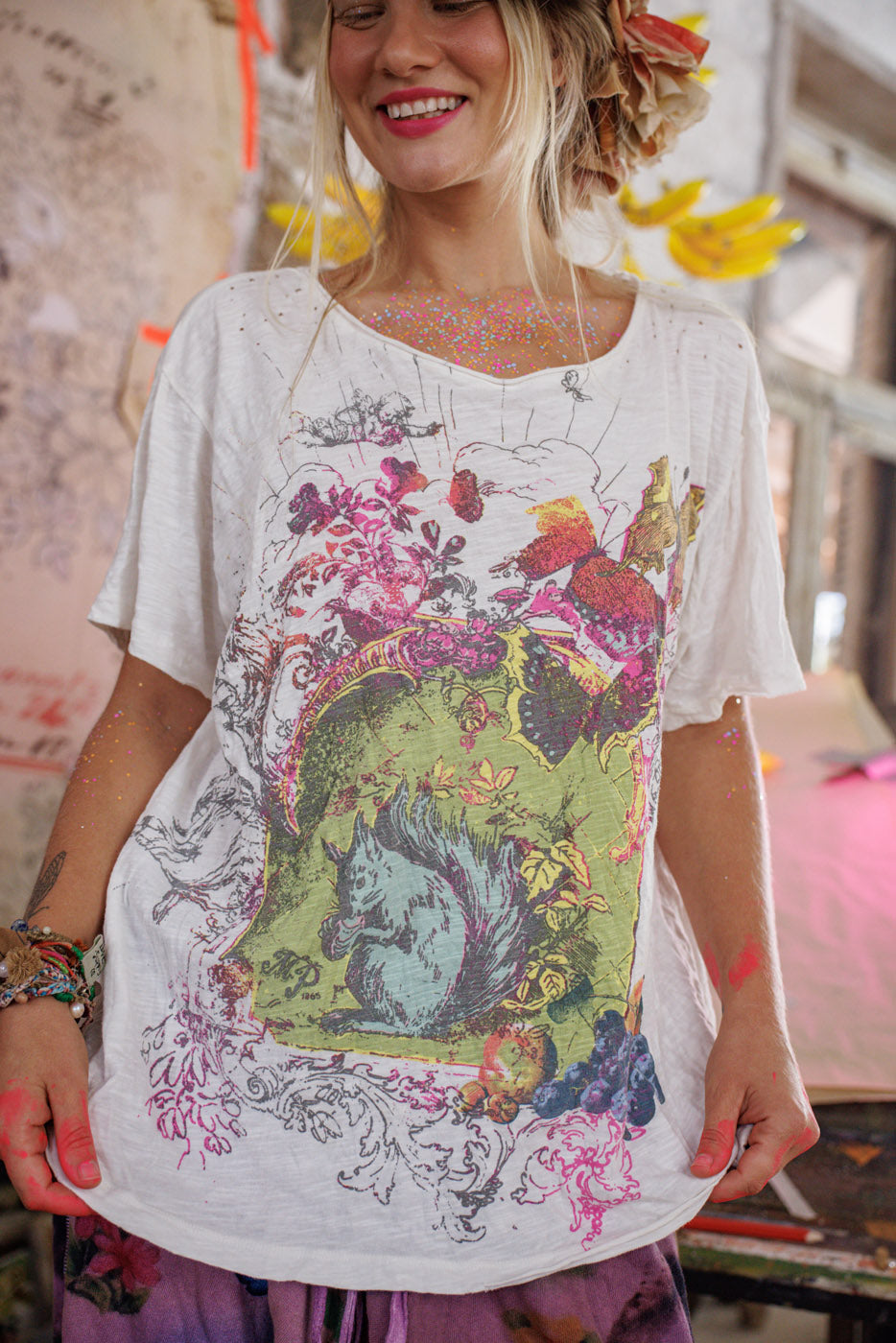 Памучна тениска Jersey Im Just A Squirrel T, Boyfriend Cut, Ръчно избледняване и износване