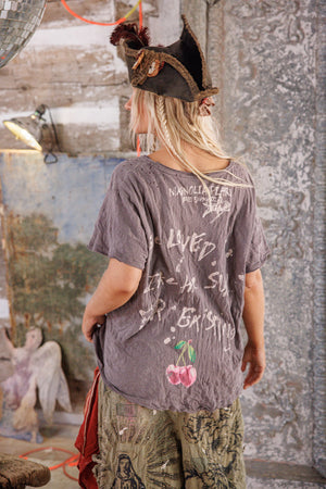 Памучна тениска от трико Moon Prism, широка кройка, ръчно избелване и износване