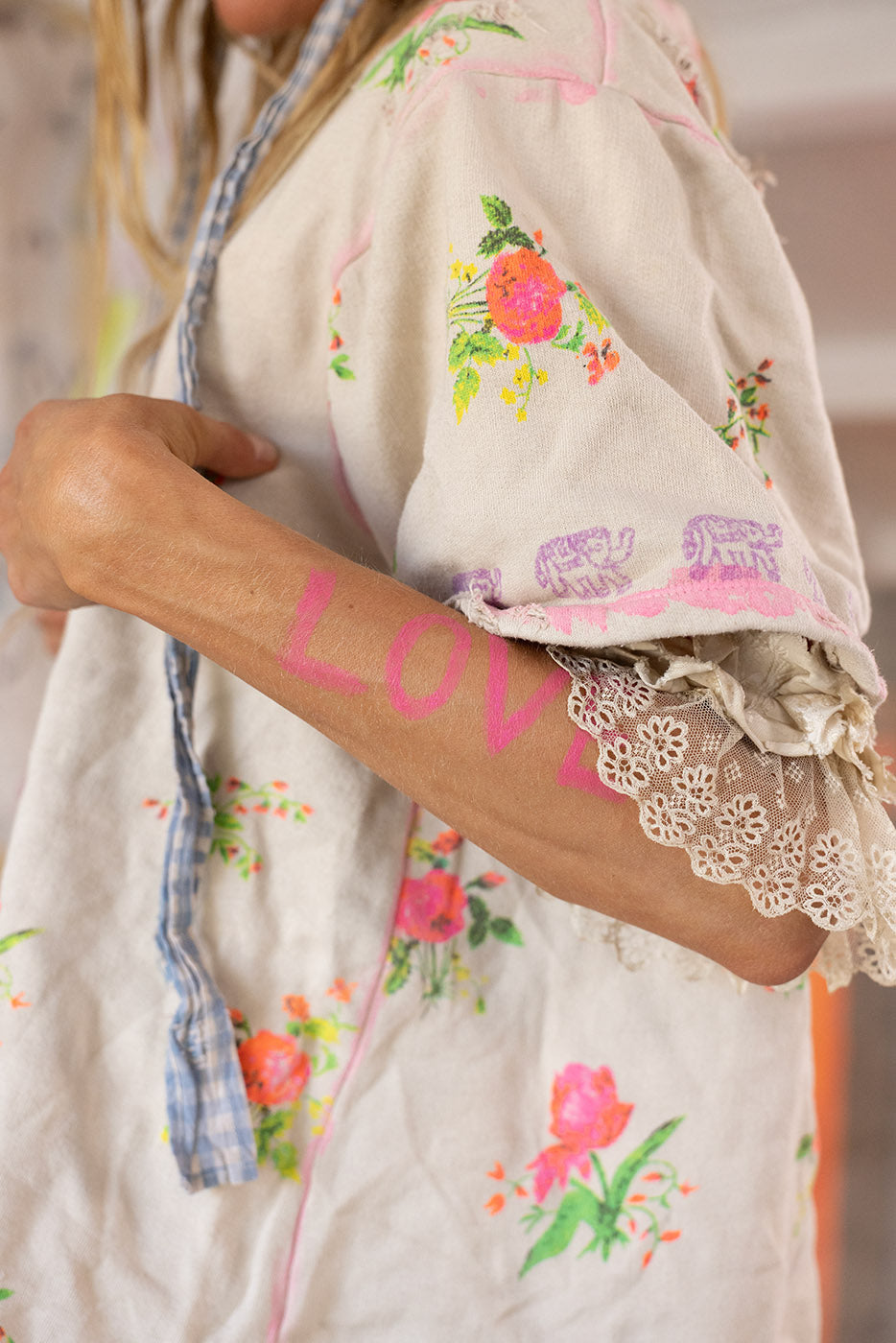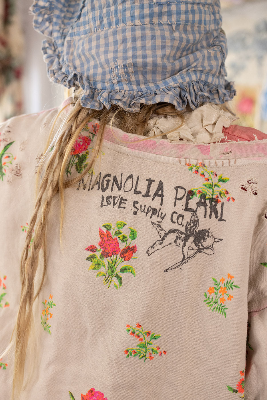 Памучен суитшърт Slay Queen Vetiver с апликация, ръчно поправяне, избледняване и износване