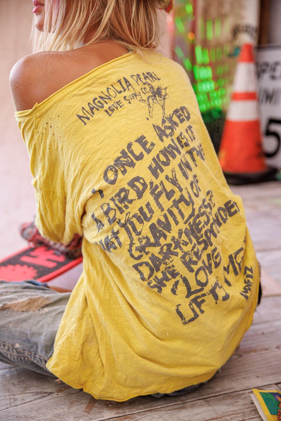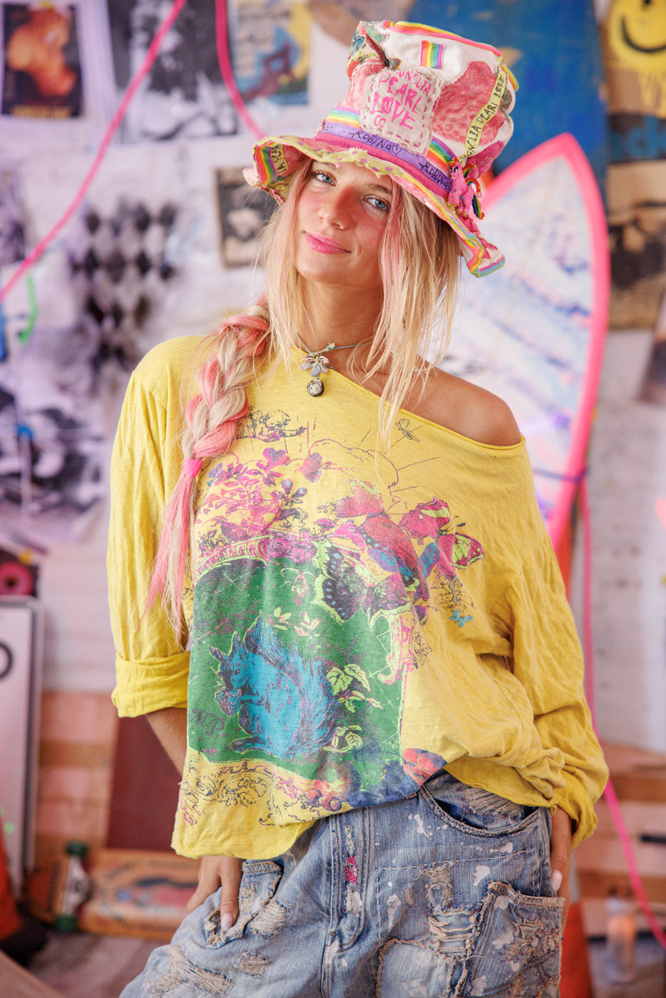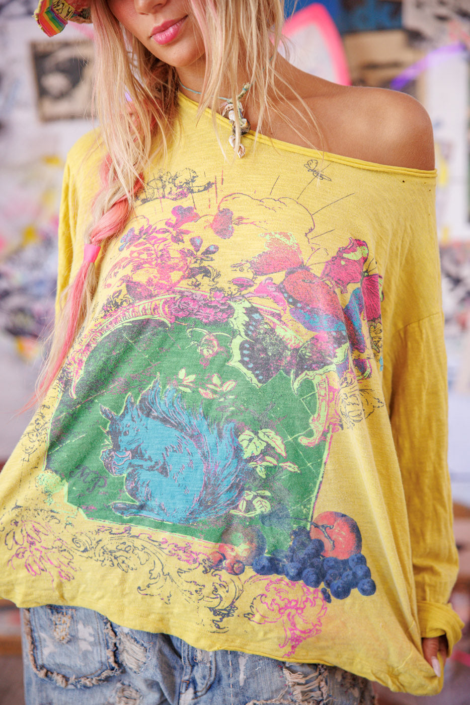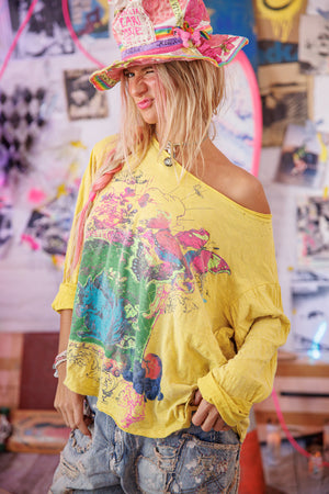 Bomuldsjersey Jeg er bare et egern Viggo T, boyfriend-snit, håndblegning og slid