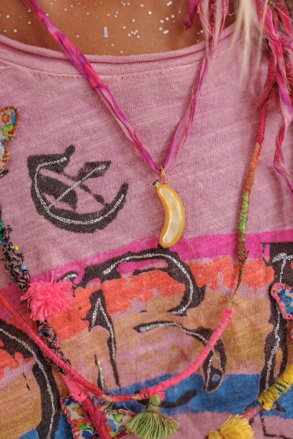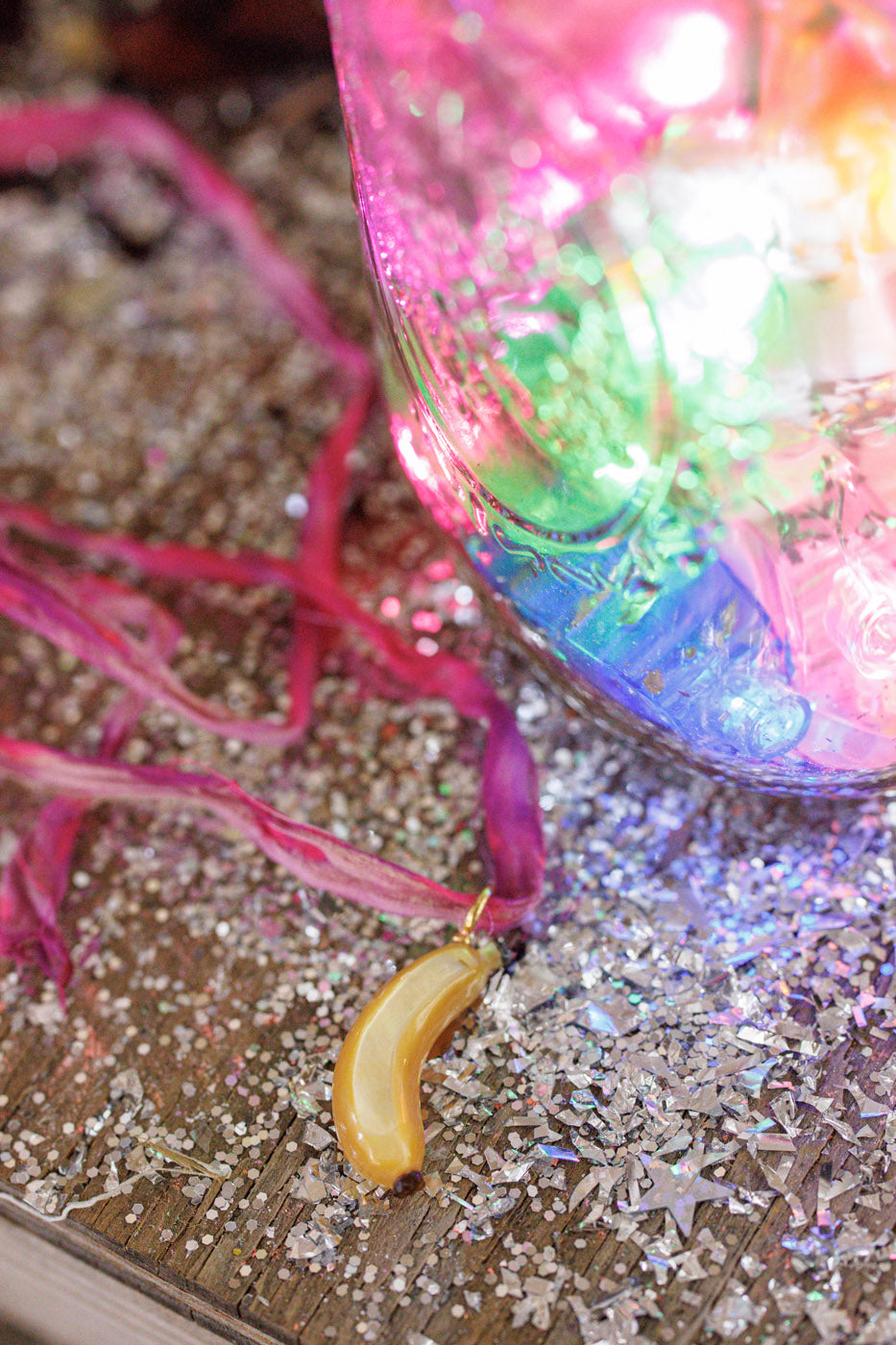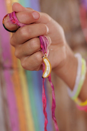 Colgante de Banana Tallado a Mano en Nácar, Concha de Ostra y Abulón