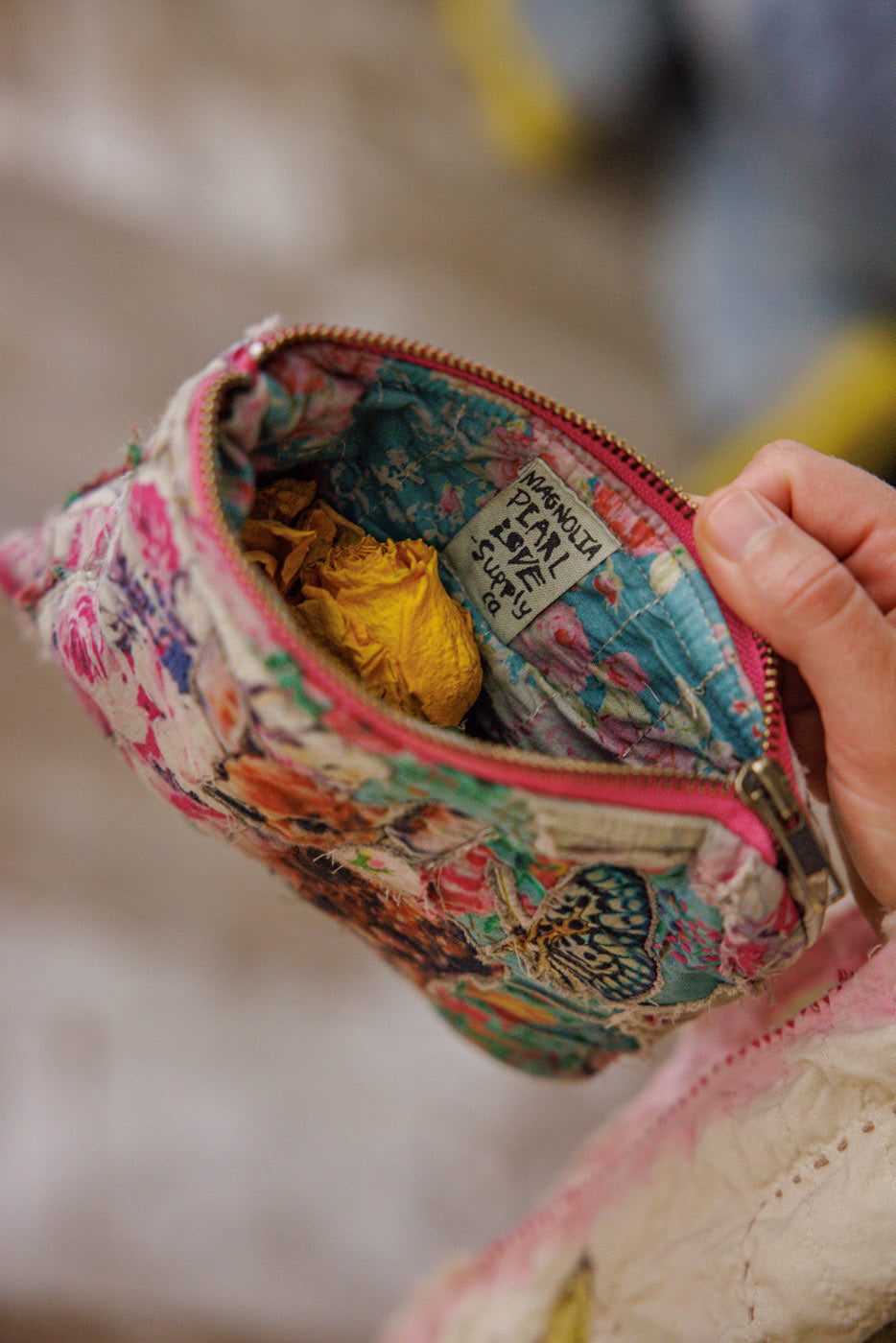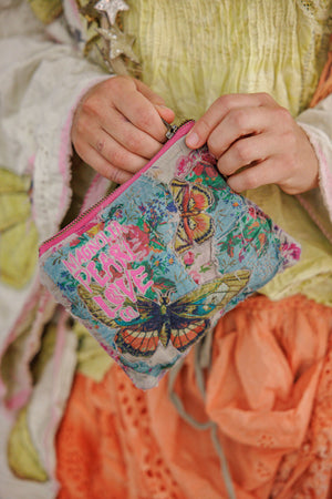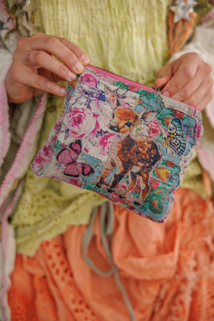 Monedero de Monedas Patchwork de Trébol de Pradera de Algodón Europeo con Cremallera, Aplique, Reparación a Mano, Desvanecimiento y Desgaste
