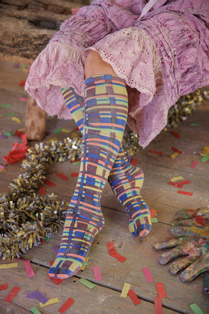 Calcetines hasta la rodilla de algodón y spandex con diseño abstracto, desteñido a mano y desgaste