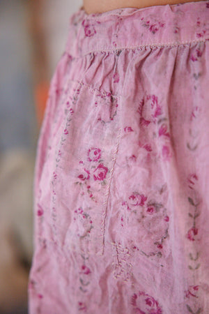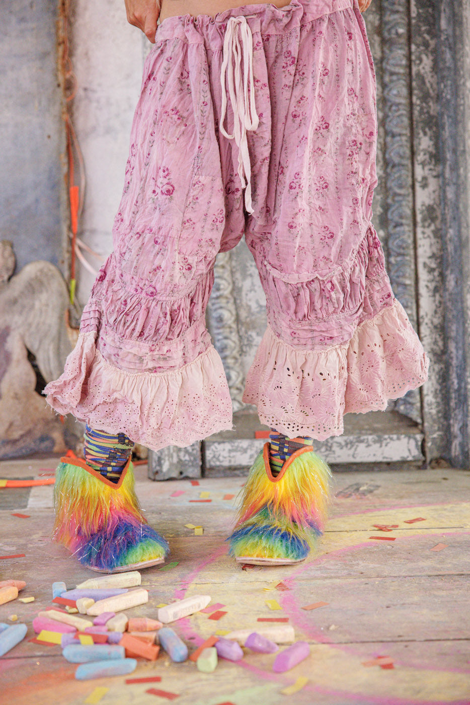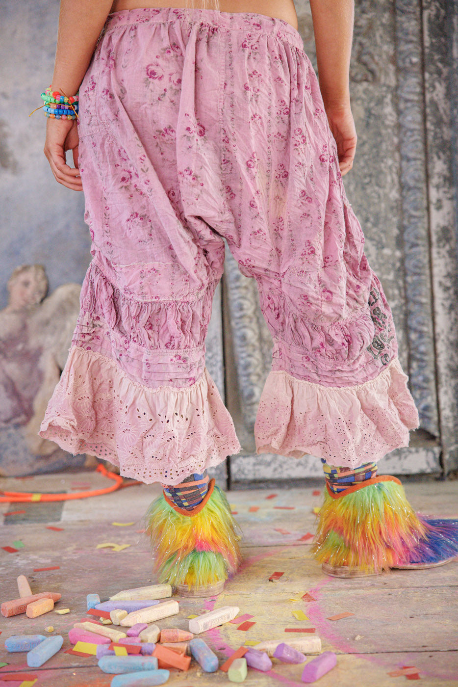 Bombachos de Duquesa Floral de Algodón Europeo con Bordado, Volantes, Pliegues, Cintura con Cordón, Reparación a Mano, Costura, Desvanecimiento y Desgaste