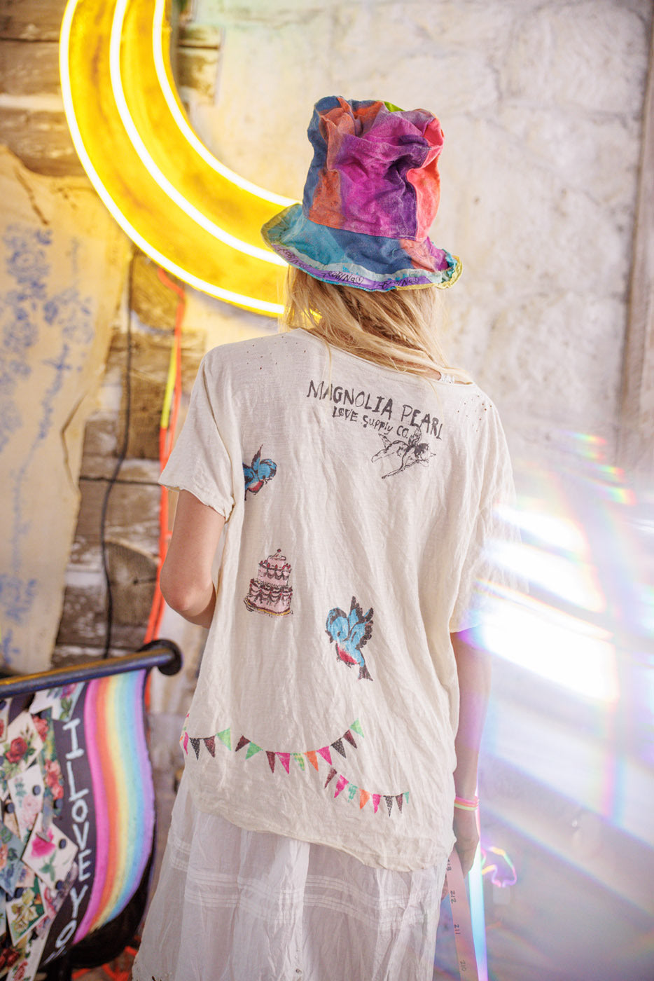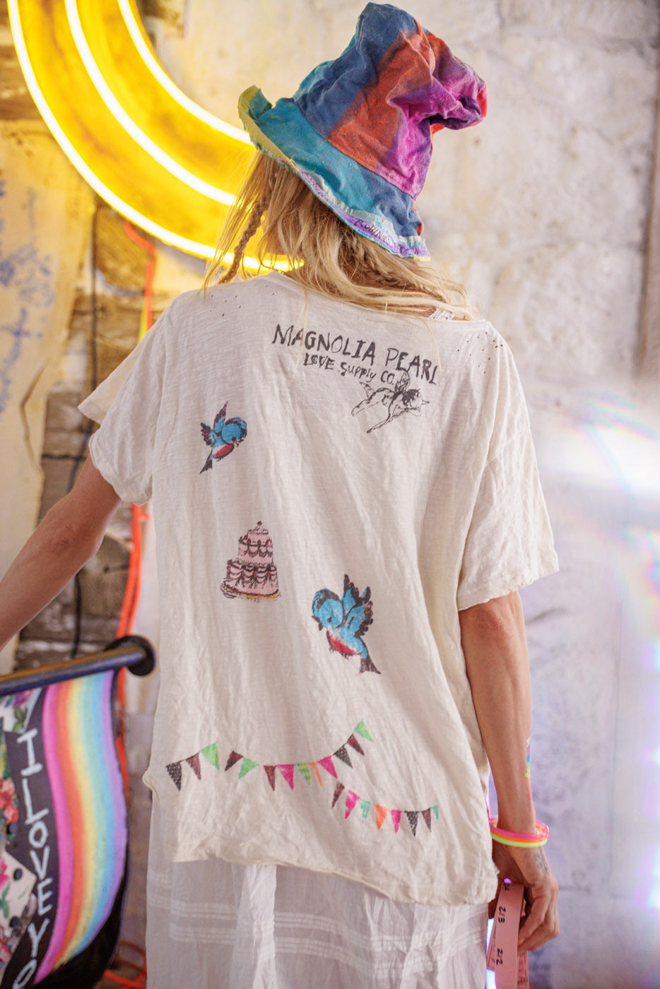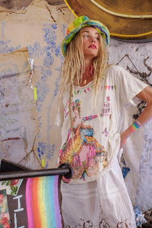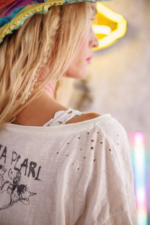 Camiseta de Pastel de Reina de Algodón Jersey, Corte de Novio con Desvanecimiento y Desgaste Hechos a Mano