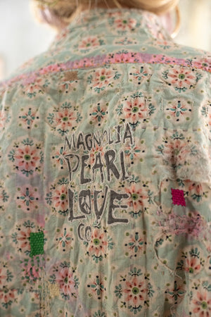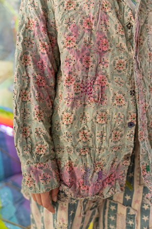 Camisa de trabajo acolchada de algodón europeo Adison con parches, salpicaduras de pintura, botones y broches mixtos, desvanecimiento a mano y reparaciones
