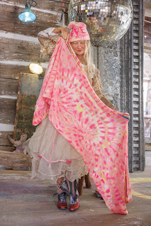 Bufanda de cachemira tejida Sol y Arcoíris con teñido a mano, desvanecimiento a mano y desgaste