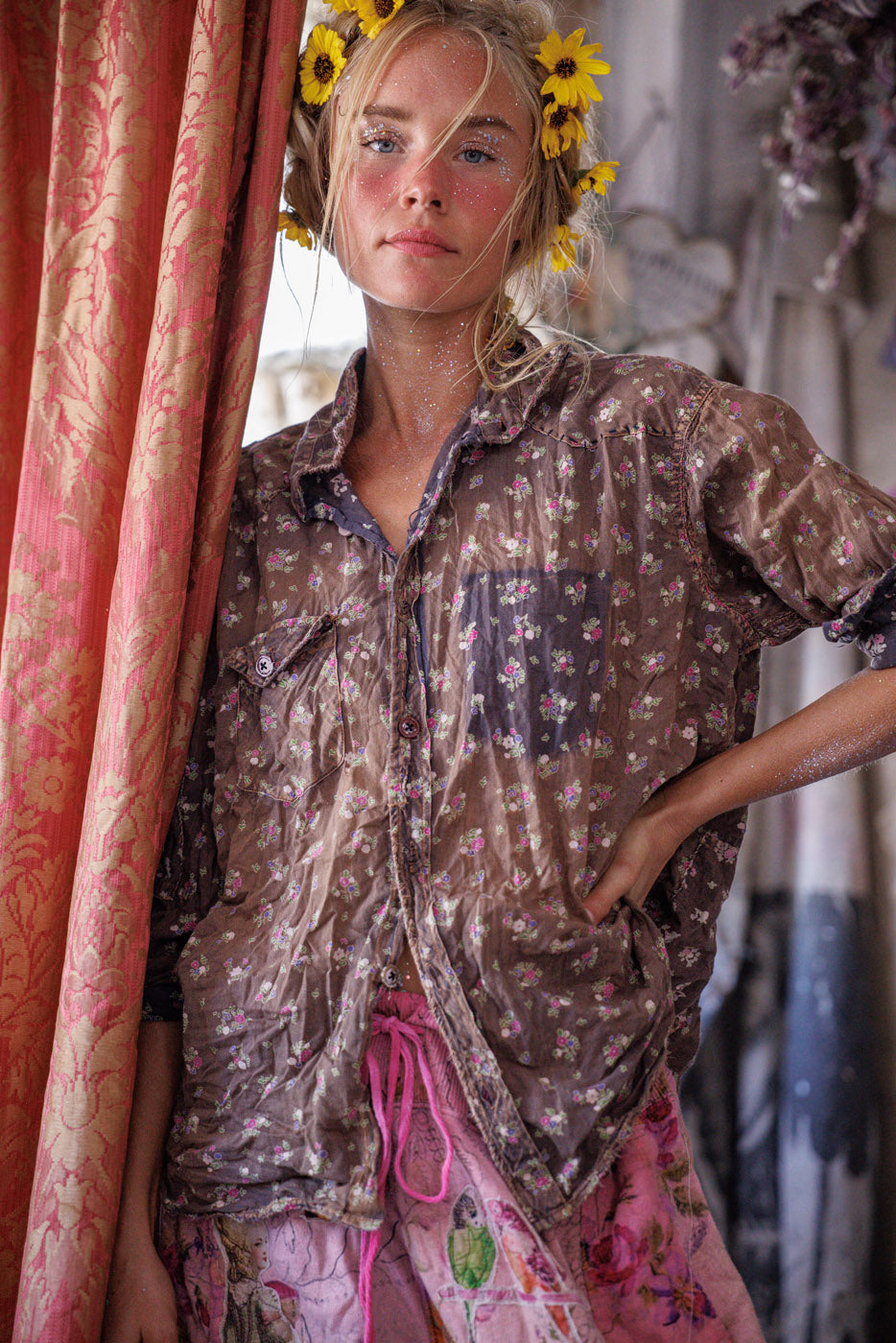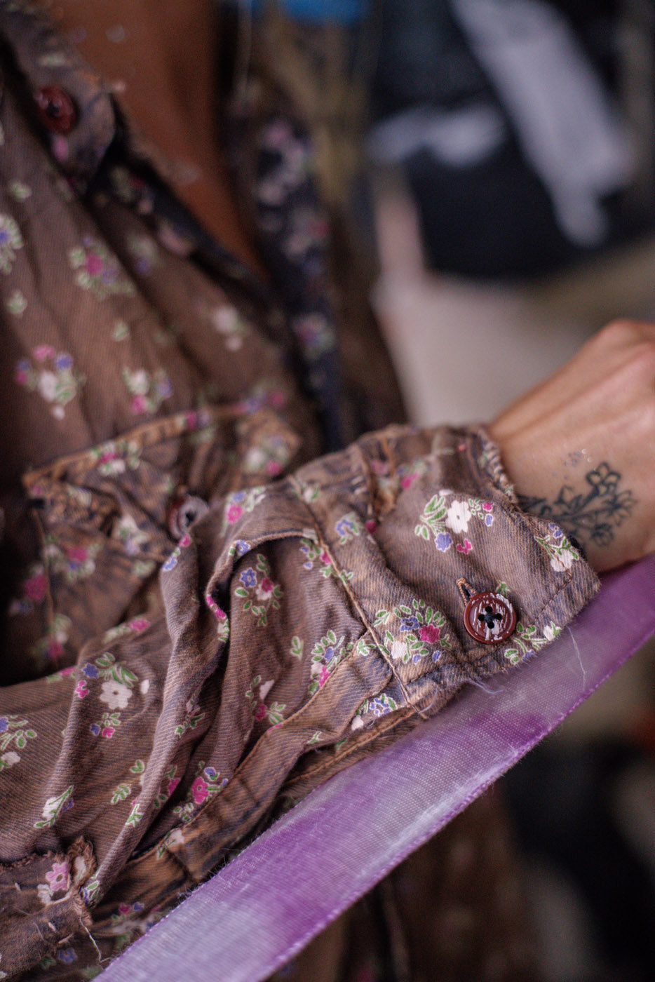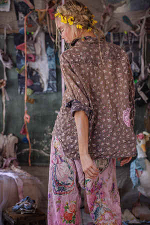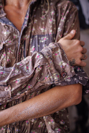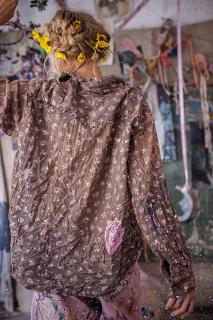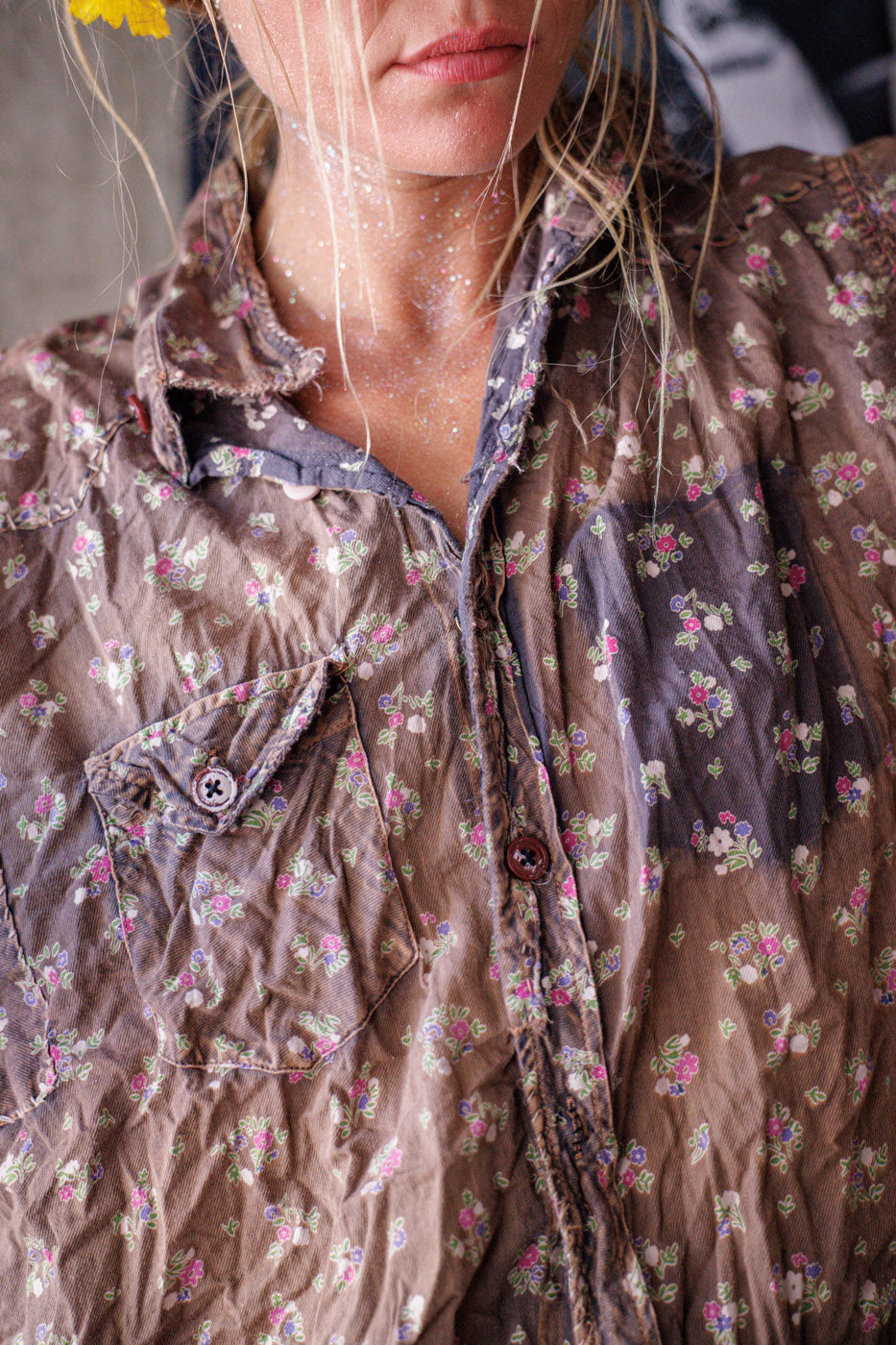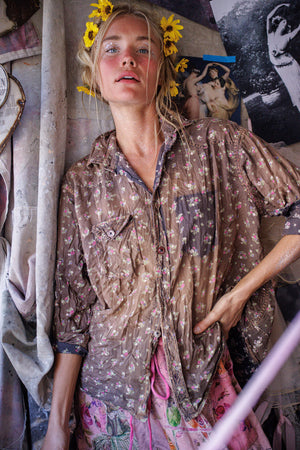 Europietiški medvilniniai Kelly Vakarų marškiniai su dažų dėmėmis, lopymu, taisymu, rankiniu blukimu ir nusidėvėjimu
