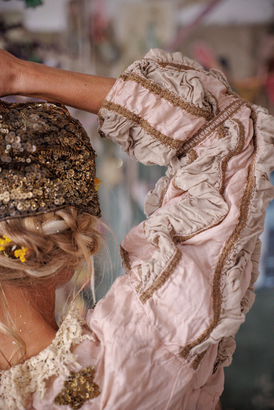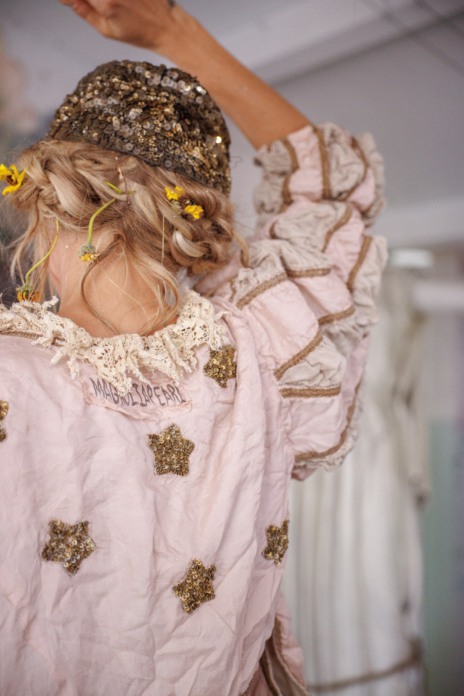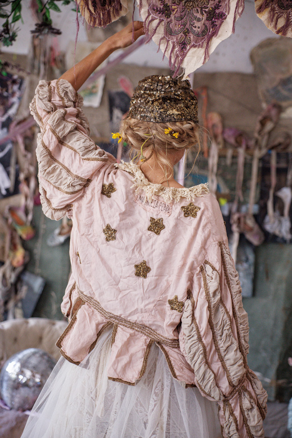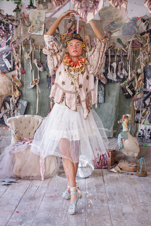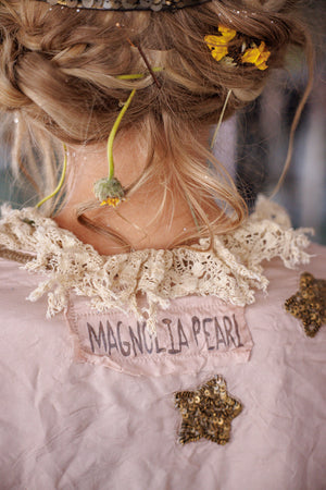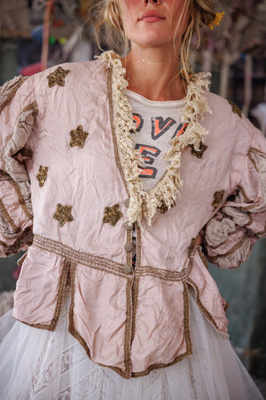 Lavendelblos bedekt met de patina van handgemaakte sterren - onze Monique Jacket straalt de moed uit van een romantische kijk, ongeacht de tegenstanders.