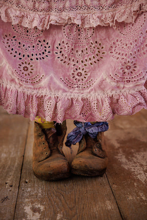 Europese Katoen Royalty Eyelet Pissarro Rok met Trekkoord Taille, Drukknopen, Ruches, Handreparatie, Vervaging en Slijtage